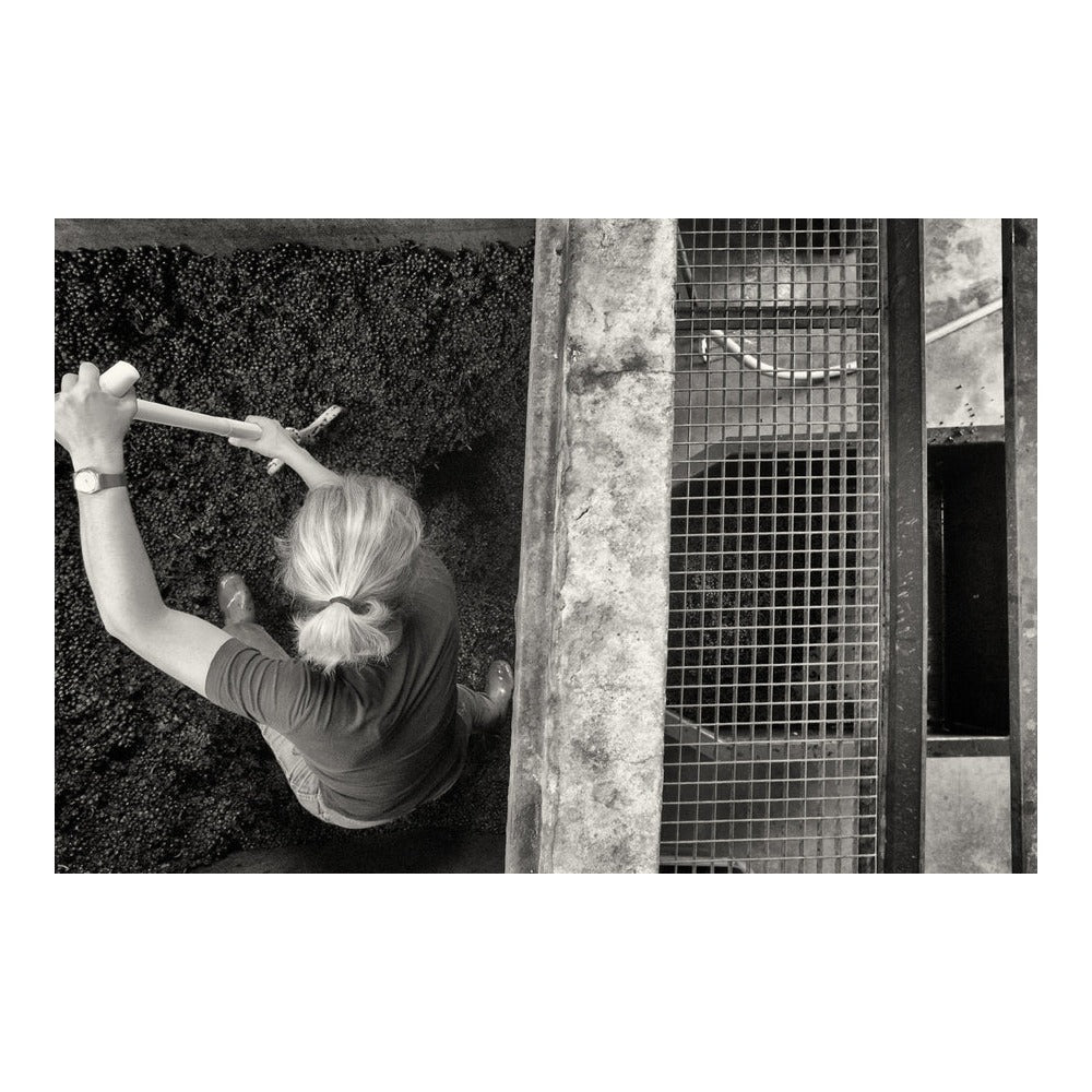 Winemaking: Whole-bunch pre-fermentation maceration at cold temperatures, followed by alcoholic fermentation with cap-punching and pumping-over.