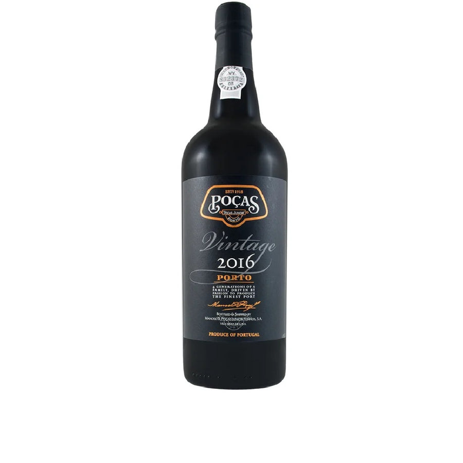 The 2016 Pocas Junior Vintage Port offers an exquisite tasting experience with its inky purple-black hue. The nose is rich with aromas of cracked rock, graphite, iodine, and Asian spices. On the palate, it is a powerhouse with flavors of blackberry compote, licorice, prunes, espresso, and walnuts. This vintage is a testament to Pocas Junior's commitment to crafting remarkable ports.